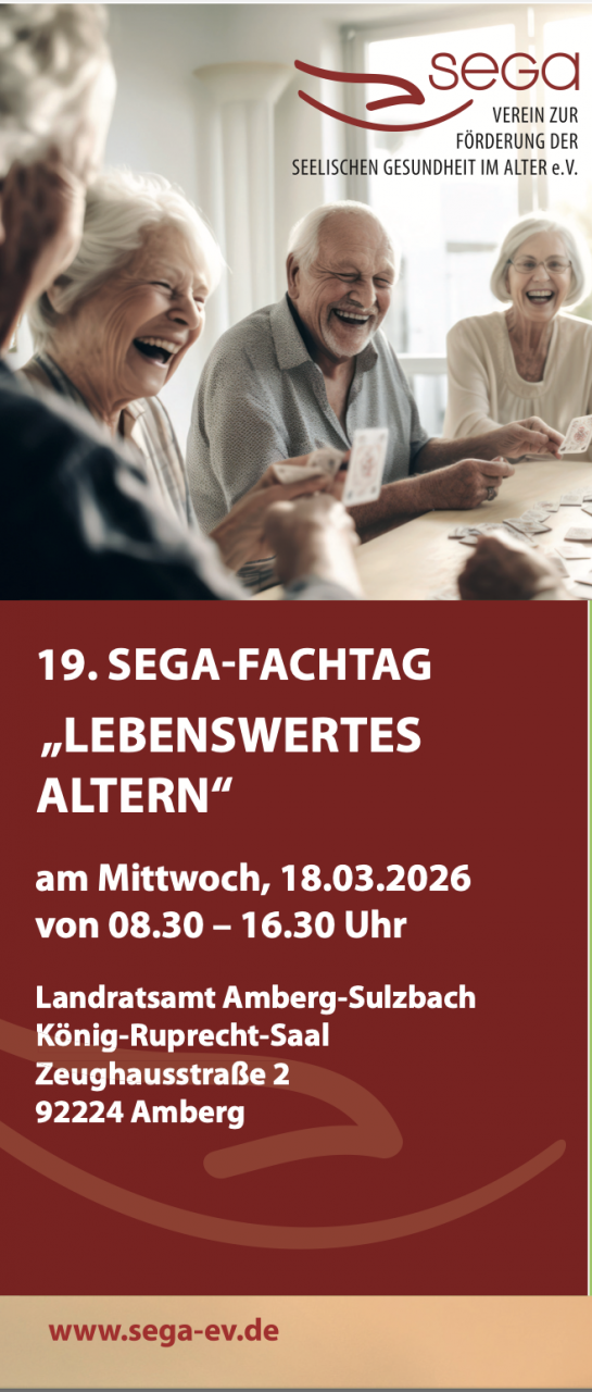 18. März 2026 13:15 Uhr in Amberg mein Vortrag: "Du bist so alt, wie du dich denkst!") im Rahmen des 19. SEGA-FACHTAG „LEBENSWERTES ALTERN".